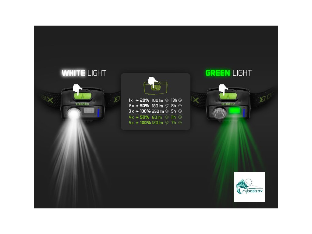 Štvrté a piate stlačenie spustí LED diódu so zeleným svetlom v intenzite 50% (výdrž 11 hodín) a 100% (výdrž 7 hodín). Zelené svetlo je výhodné pri zdolávaní rýb, pretože ryby menej plaší a zároveň nepriťahuje otravný hmyz, čo oceníte najmä počas horúcich letných večerov.