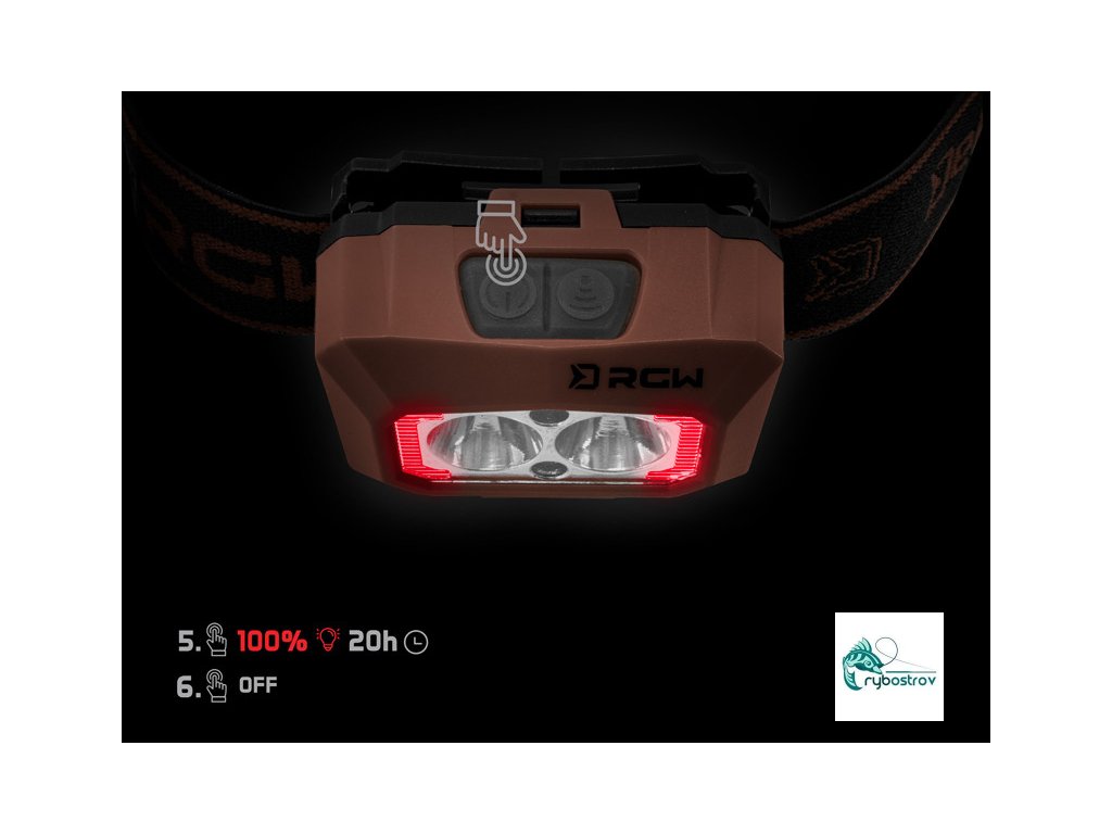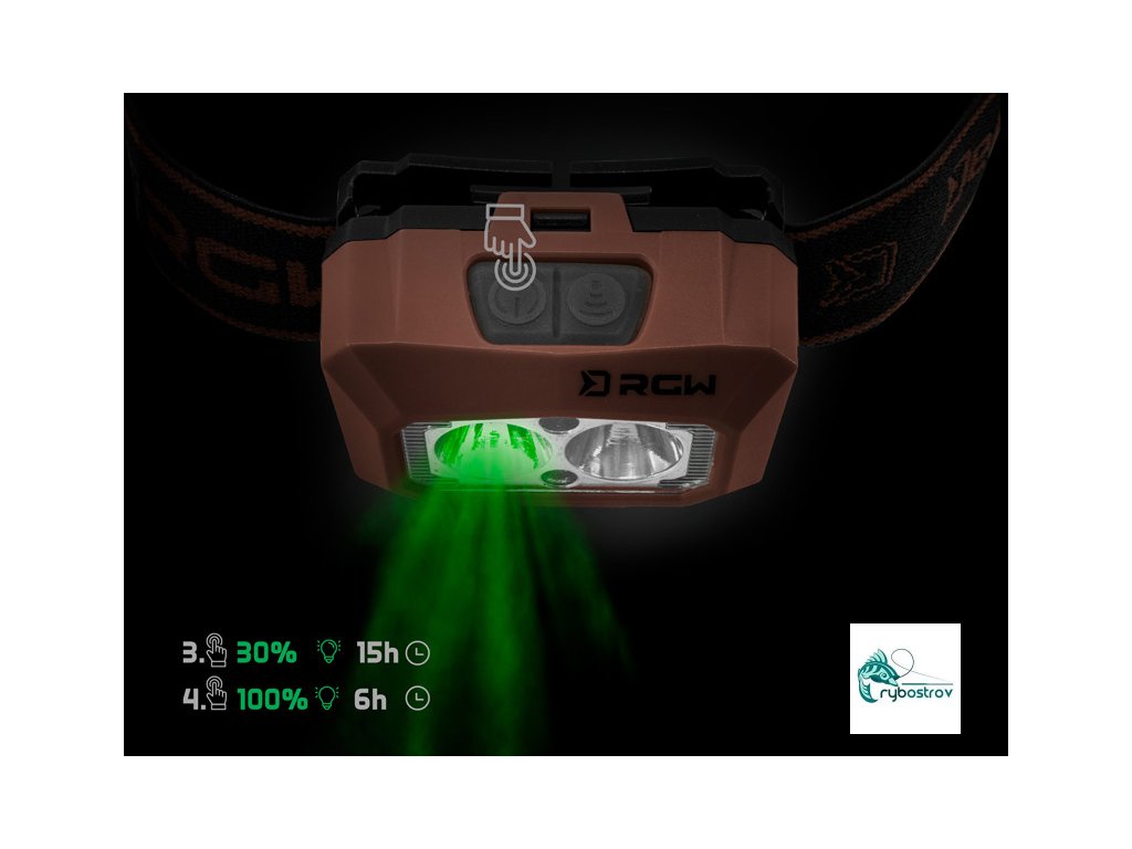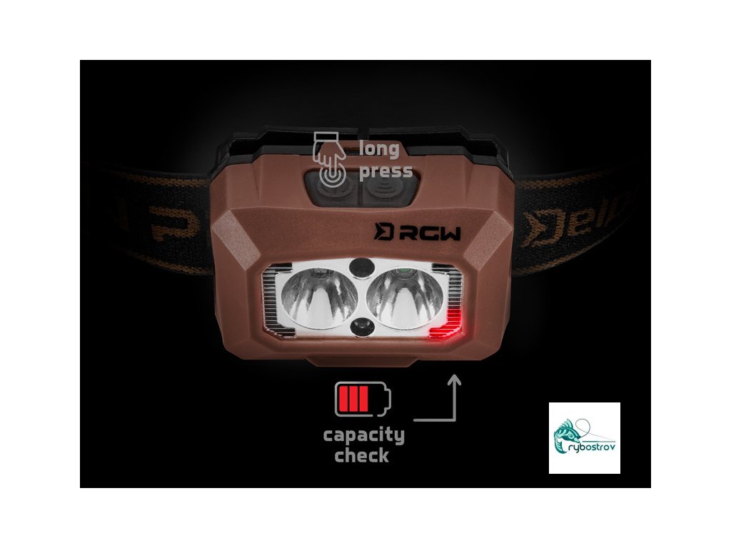 Originálna, prepracovaná čelovka od značky Delphin, ktorá ponúka niekoľko skvelých funkcií a výkon 5W so svietivosťou 200lm. RWG PRO UC disponuje pohybovým senzorom a troma farbami svietenia, medzi ktoré patrí klasické biele svetlo, ale taktiež zelené a červené. Po prvom kliknutí sa čelovka rozsvieti na 30% a vydrží svietiť až 10 hodín. Po druhom kliknutí svieti na 100% s výdržou 4h. Pri treťom kliknutí sa zmení farba svietenia na zelenú s intenzitou 30% a excelentnou výdržou až 15h. Po 4. kliknutí svieti zelené svetlo na 100% a pri 5. kliknutí sa na 100% rozsvieti svetlo červené. Práve zelené a červené svetlo nepriťahuje otravný hmyz a rozhodne ho oceníte aj počas zdolávania rýb, ktoré sa plašia omnoho menej ako pri osvietení bielym svetlom. Senzor pohybu je možné aktivovať pomocou druhého tlačidla a na rozsvietenie lampy tak stačí pred ňou zamávať dlaňou. Nespornou devízou je taktiež indikácia kapacity batérie, ktorá sa na čelovke rozsvieti pri dlhšom podržaní spínacieho tlačidla. Batériu s kapacitou 1500 mAh je možné nabíjať cez USB-C kábel, pričom plné nabitie trvá 4,5h.Originálna, prepracovaná čelovka od značky Delphin, ktorá ponúka niekoľko skvelých funkcií a výkon 5W so svietivosťou 200lm. RWG PRO UC disponuje pohybovým senzorom a troma farbami svietenia, medzi ktoré patrí klasické biele svetlo, ale taktiež zelené a červené. Po prvom kliknutí sa čelovka rozsvieti na 30% a vydrží svietiť až 10 hodín. Po druhom kliknutí svieti na 100% s výdržou 4h. Pri treťom kliknutí sa zmení farba svietenia na zelenú s intenzitou 30% a excelentnou výdržou až 15h. Po 4. kliknutí svieti zelené svetlo na 100% a pri 5. kliknutí sa na 100% rozsvieti svetlo červené. Práve zelené a červené svetlo nepriťahuje otravný hmyz a rozhodne ho oceníte aj počas zdolávania rýb, ktoré sa plašia omnoho menej ako pri osvietení bielym svetlom. Senzor pohybu je možné aktivovať pomocou druhého tlačidla a na rozsvietenie lampy tak stačí pred ňou zamávať dlaňou. Nespornou devízou je taktiež indikácia kapacity batérie, ktorá sa na čelovke rozsvieti pri dlhšom podržaní spínacieho tlačidla. Batériu s kapacitou 1500 mAh je možné nabíjať cez USB-C kábel, pričom plné nabitie trvá 4,5h.