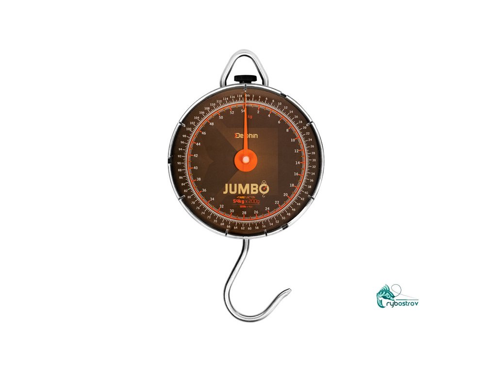 Robustná mechanická váha určená na váženie tých najväčších úlovkov. Masívna konštrukcia váhy JUMBO umožňuje zmeranie hmotnosti až do 54 kg s minimálnou odchýlkou. Nameraná hodnota sa za pomoci ručičky zobrazuje na veľkom ciferníku v dvoch rôznych jednotkách- kilogramoch a librách. Dvíhanie počas váženia uľahčuje veľmi pevný kovový držiak. Vďaka svojim parametrom si váha Delphin JUMBO nájde uplatnenie okrem rybolovu aj pri poľovníctve či v iných sférach bežného života.Robustná mechanická váha určená na váženie tých najväčších úlovkov. Masívna konštrukcia váhy JUMBO umožňuje zmeranie hmotnosti až do 54 kg s minimálnou odchýlkou. Nameraná hodnota sa za pomoci ručičky zobrazuje na veľkom ciferníku v dvoch rôznych jednotkách- kilogramoch a librách. Dvíhanie počas váženia uľahčuje veľmi pevný kovový držiak. Vďaka svojim parametrom si váha Delphin JUMBO nájde uplatnenie okrem rybolovu aj pri poľovníctve či v iných sférach bežného života.