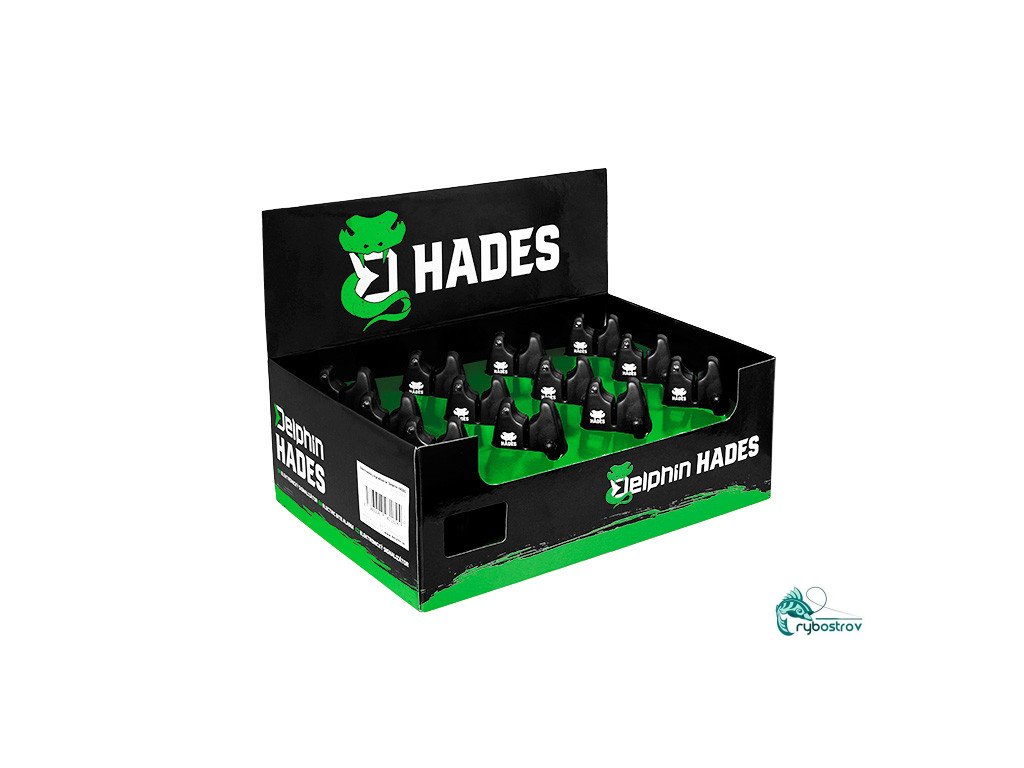 Delphin HADES je cenovo veľmi dostupný elektronický signalizátor záberu. Ponúka základné funkcie svetelnej a zvukovej signalizácie. Je vybavený jednou záberovou LED diódou a detekuje záber v oboch smeroch. Jeho ovládanie je naozaj veľmi jednoduché a zvládne ho každý. Na spodnej strane sa nachádza vstup pre 2,5mm jack konektor, a preto je možné aj pripojenie závesného signalizátora záberu so zabudovanou svetelnou signalizáciou. V prednej časti sa nachádzajú dva otočné ovládače. Vrchný ovládač slúži okrem ovládania hlasitosti aj ako vypínač s aretáciou. Spodným ovládačom si viete nastaviť požadovanú výšku tónu. Signalizátor je vodotesný, takže sa oň nemusíte obávať ani počas daždivých dní.