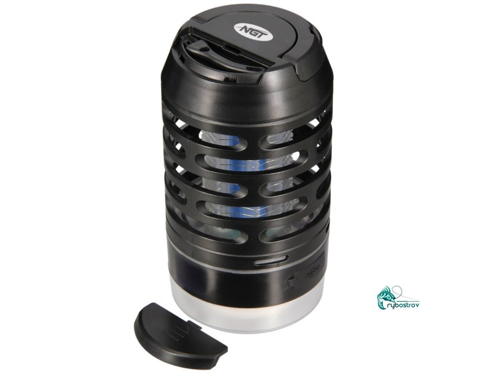 Multifunkčný, kompaktný, dobíjací lapač hmyzu a svietidlo od britskej značky NGT je perfektným doplnkom pre rybárčenie, kempovanie alebo táborenie. Bug Zapper & Light System je účinný lapač hmyzu a zároveň praktické LED svietidlo do bivaku, stanu alebo rovno na lovné miesto, kde by mal taktiež značne eliminovať dotieravý hmyz. Lapač funguje na princípe ultrafialových lúčov, ktoré prilákajú obtiažny hmyz do bezprostrednej blízkosti lapača, kde následne dôjde k usmrteniu hmyzu neškodným elektrickým výbojom.